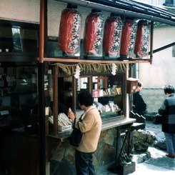参拝の方はここで和ろうそくを貰って献燈し、お店で用意している小さいろうそくを代わりに持って帰られます。