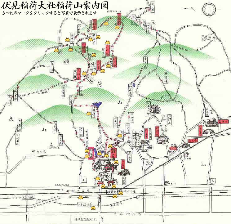 「お産場稲荷・お産場茶屋」を含めた伏見稲荷大社の、「お山」全体の案内図 は、こちらになります。